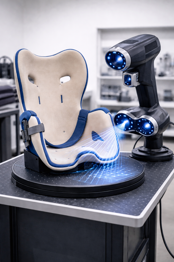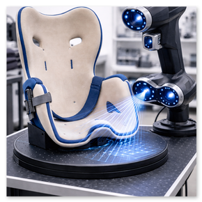 - Probeschale: Erste Passform, Überprüfung Sitzwinkel, Pelottenposition, Gurtführung.